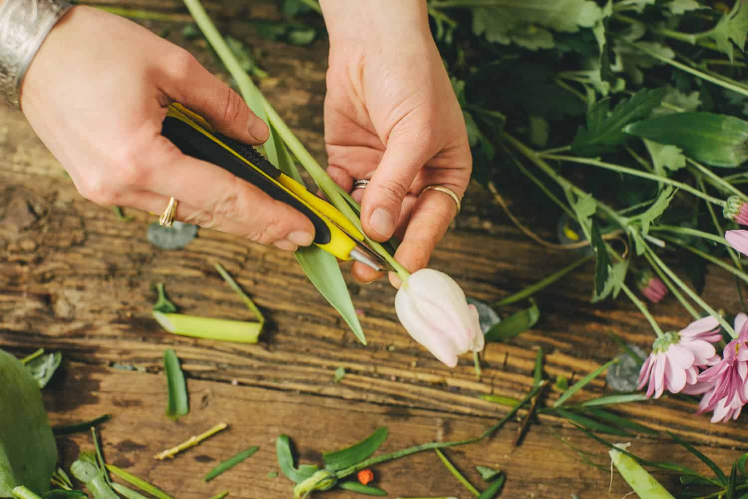 – When you get home with your flowers, remove the leaves from any part of the stem that will be in water (this will slow down the decomposing process and your arrangement will last longer).