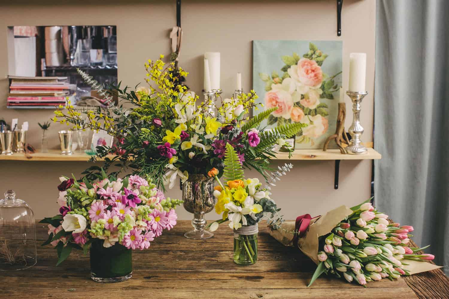 Local flowers we used: freesia, daffodils, anemone, forsythia, iris, ranunculus, alstroemeria, tulips and goldenrod.