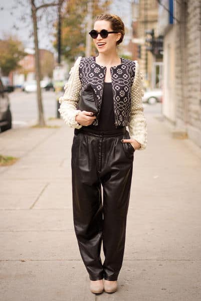 Vintage 1980s Baggy Black Leather Pants, $85