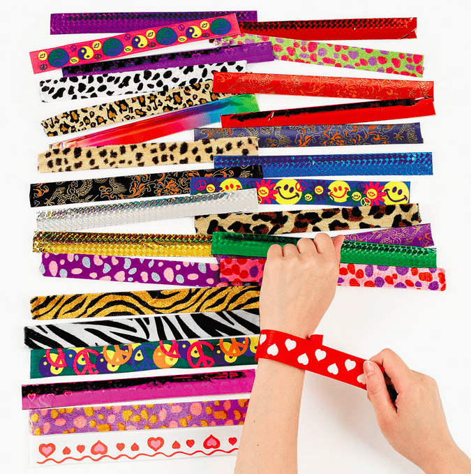 Like most trends in my school, slap bracelets got banned – not just because we were obviously slapping each other under the guise of fashion, but because the gentlemen in my grade one class started stealing them and using them as swords. Though in retrospect, I think banning them was the teachers’ mistake. Because while they were afraid of guys whipping and trying to stab each other with the most dangerous party favour any of us would ever receive, they could’ve used the situation to prove toys obviously aren’t gender specific. Or at the very least, that some toymakers just want to watch the world burn.