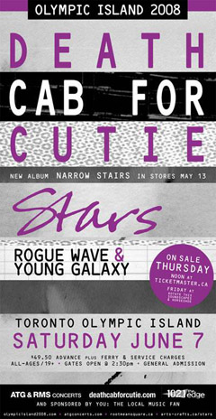 Okay I digress – Death Cab for Cutie, The Stars, Rogue Wave & Young Galaxy are far cooler than Centreville.