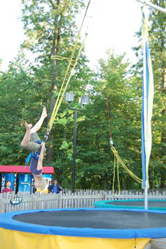 Maniacally jumping on a tramp for babies.