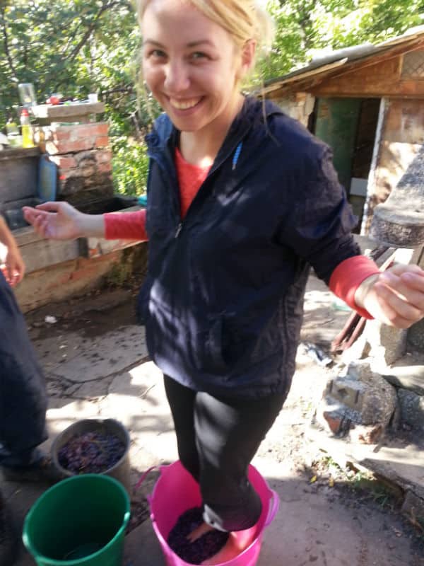 Well, I’ve got to be honest, once I arrived at Boyan’s house and took in my accommodations, I started asking myself the same thing. I’m not particularly high maintenance, but man, this mattress had to be 100 years old and I needed to wear Wellington boots in the shower (not really, but that would’ve been helpful and way less gross). But I’m a go-with-it kind of gal, so I made the best of an awkward situation and rolled up my sleeves (and pants) and got to fermenting and bottling and grape-stomping.