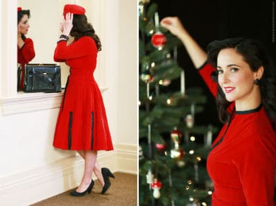 Red Velvet Swing Dress with Black Piping, 1950’s – $250.00