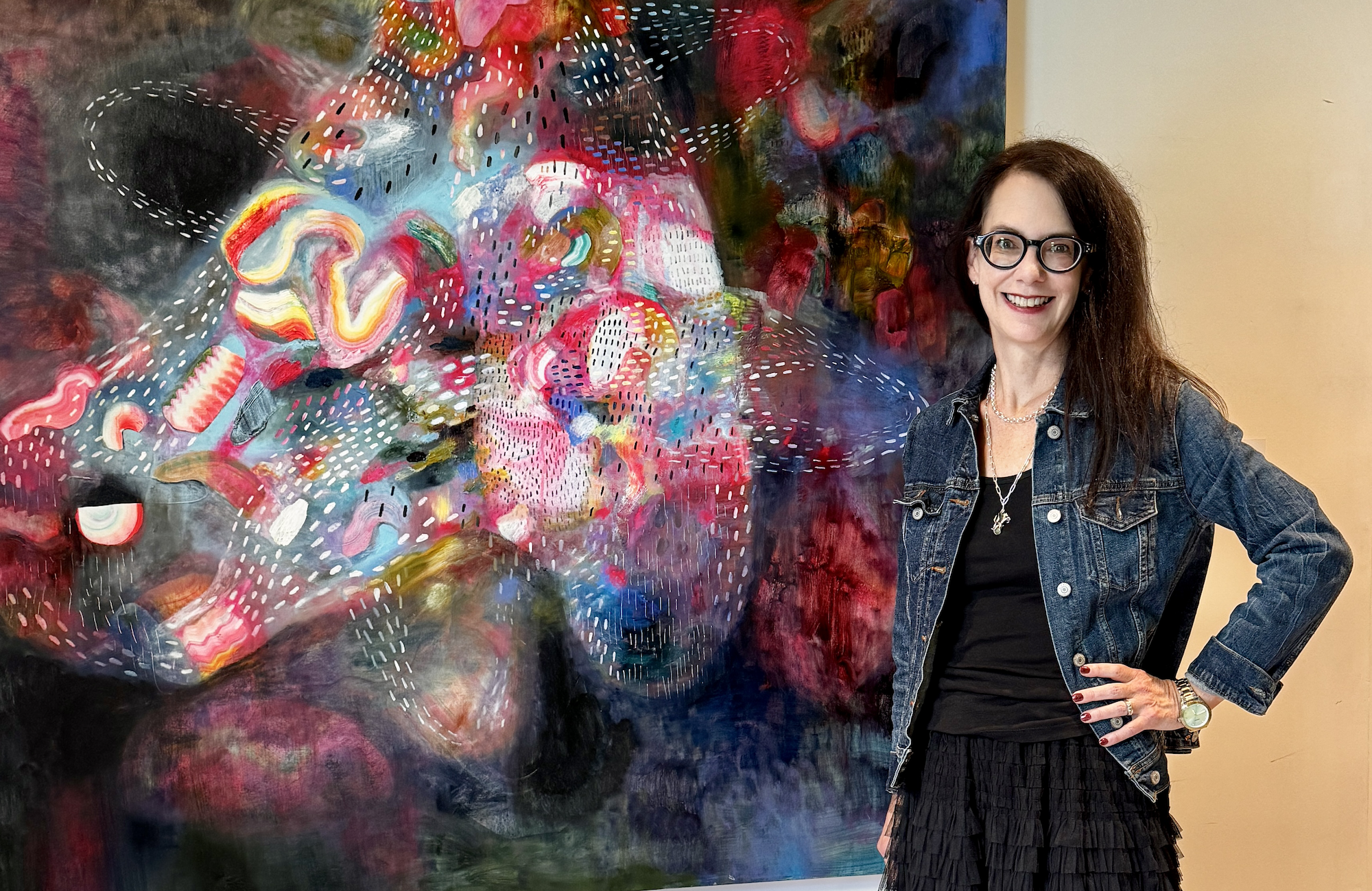 Gladstone’s current exhibit, titled Intuition, features work from artists Jeff Nye, Julie Gladstone, Daria Beer, Sarah Gonzalez and Ester Pugliese. “These artists all work in a way that maybe is slightly unexpected in that they don’t start with preparatory sketches, and that’s where the intuition comes in,” Petrie explains. “They’re tapping into memories, tapping into feelings, and then they’re responding to their own mark making.”