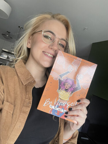 I think it’s different for different stories. So my book Be Yourself! Oh, not like that is an autobiographical graphic novel. It’s about me getting diagnosed autistic at 28 and it talks about my life and sort of what led to it. So that was a story I really wanted to tell, and that was the story first. Then the visuals came after, because I needed to put the story in pictures.