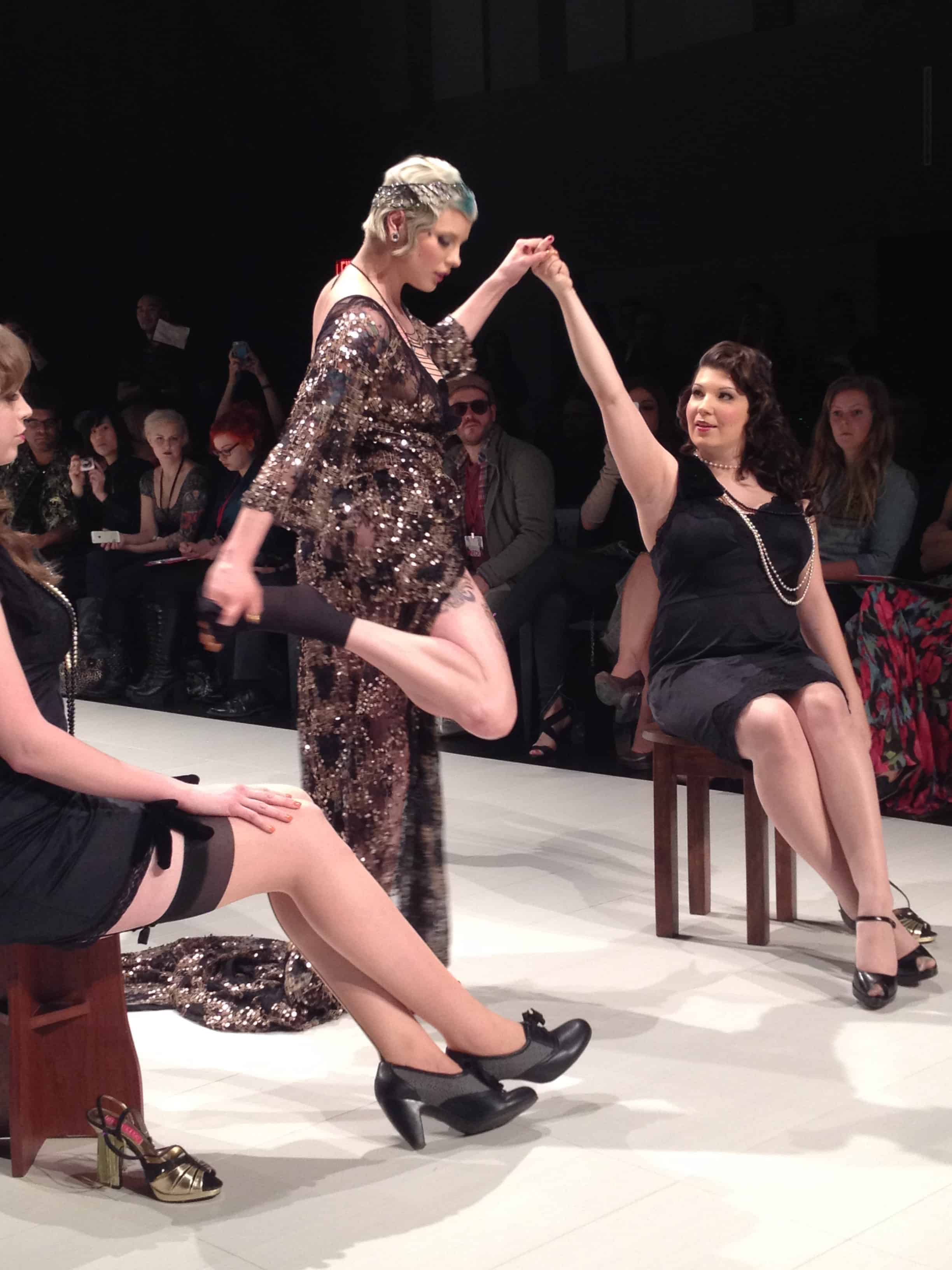 Standouts of the evening included Asphyxia, which had a clear 1920s influence with it’s beautifully beaded dresses and glammed up headbands. While not exactly Grit, Asphyxia ended the show with a runway turned burlesque show, when one of the models stripped down from her sequined dress to a pair of pasties and a, well, string.