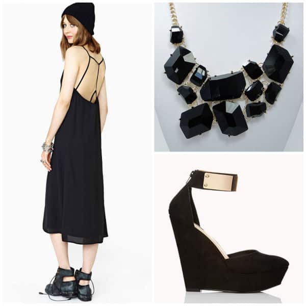 Nasty Gal Midnight Crush Dress $34 + Gold Tone Statement Necklace $11.95 + Forever 21 Sophisticated D’Orsay Wedges $27.99