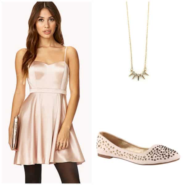 Shop for Jayu necklace ($11) + Forever 21 Dancing Queen Fit + Flare Dress $27.80 + Aldo Vanostrand Flats $20.99