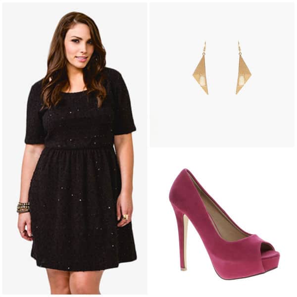 Forever 21+ Sequined Boucle Dress $29.80 + New Look Providence Peep-Toed Heels $25.99 + Mariel Earring $16.99