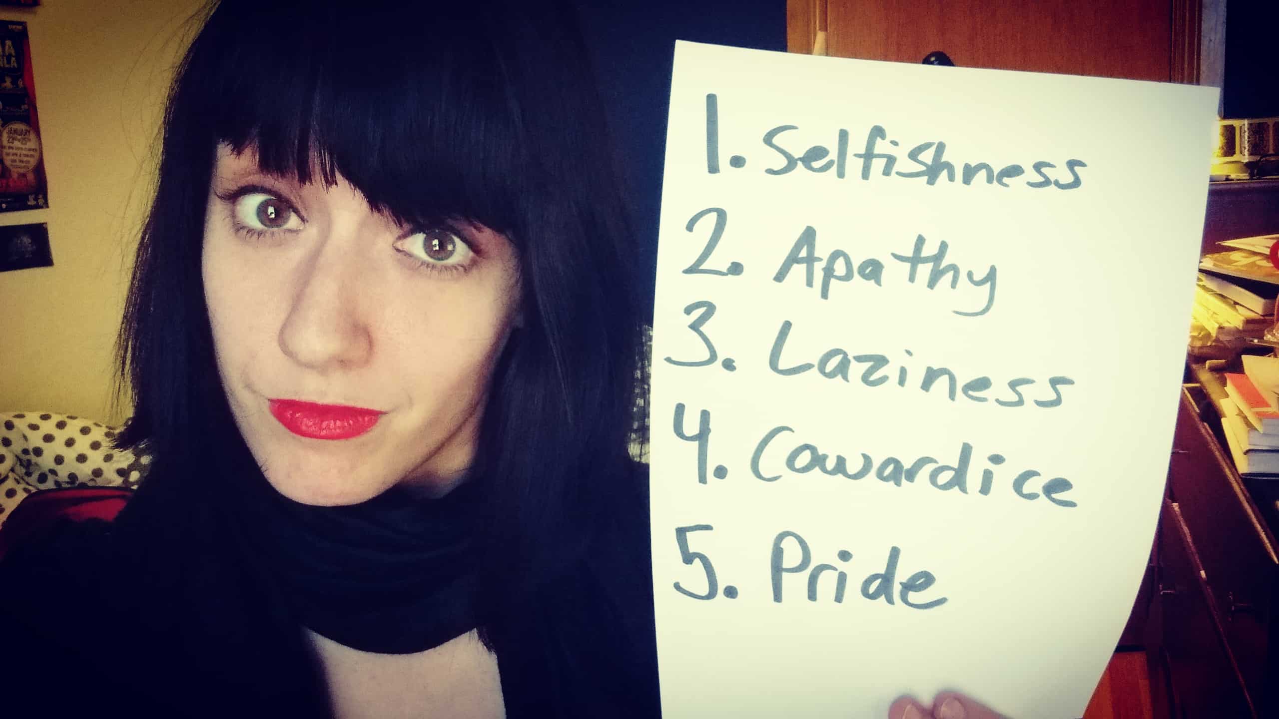 You can’t face the music if you aren’t willing to admit that you have done wrong, that you HAVE been an asshole, that you have forgotten plans and ignored the existence of a friend and slept through birthday parties (guilty). What often prevents people from owning up to their personal misconduct is that they think doing wrong means they’re a truly awful person who is going to be an awful person until they expire. So you deny, deny, deny. How could you have been shitty to someone? You’re perfect. They’re totally overreacting. They’re being delusional and crazy emotional and are clearly obsessed with you. Which translates to “pride, pride, pride, pride and pride.”