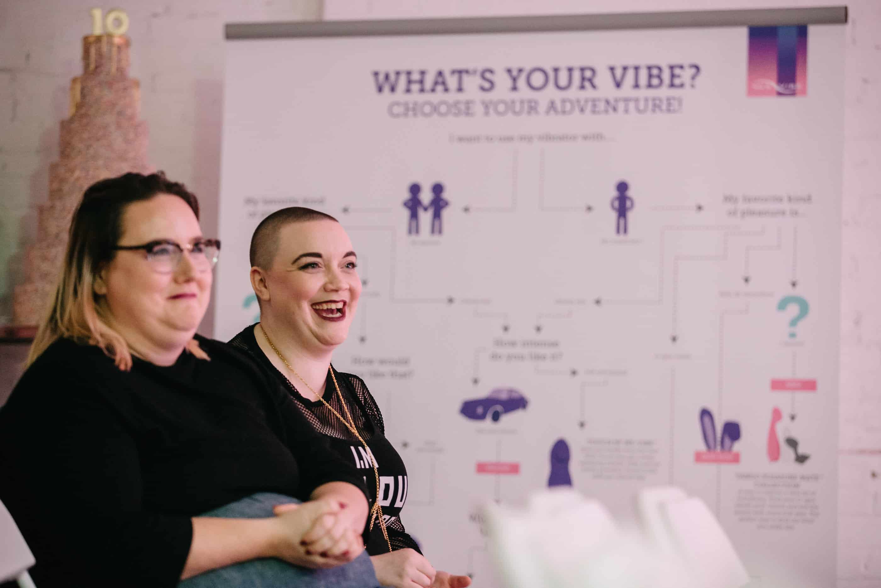 Before introducing our host, comedian Jess Beaulieu, we passed out filthy mad libs and asked audience members to get friendly with their neighbours by choosing naughty adjectives and adverbs to kick things up a notch. We then moved on to strange sex trivia (“What other animal species loves oral sex?”) and asked audience members to shout out their guesses. Those quick enough to answer correctly left with a We-Vibe vibrator. We had all the models on offer.