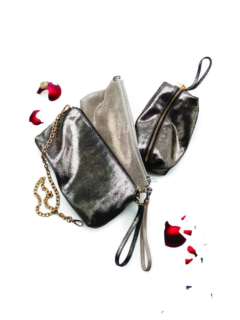 The Sharon Collection of sparkle suede clutches. Reg. $79/SALE $49