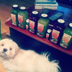 On the second day, I woke up feeling refreshed. I also noticed that the typical dark circles under my eyes had faded quite a bit. I was feeling good…and then 12:00pm hit. I like to call this the “I will shank your mother for a cheeseburger” phase. Hunger hit. Cravings hit. I needed a hit…of food. Thankfully, it is recommended that you drink a bottle of juice every 90 minutes. This is helpful, because when you feel like you are at your hungriest, it is time to consume another jar of health. While the juice doesn’t satisfy the craving of meat and potatoes, it does cut the actual hunger. Unfortunately, as if cravings weren’t enough, I suffered from headaches too. This was my body‘s way of saying, “Hey, bitch! Where’s the caffeine and sugar at?” I find that distracting yourself with friends, or yoga, or forcing your dog into hour-long cuddle sessions, really takes your mind off of the side effects of the detox. You have to keep in mind that everything your body is going through is because the cleanse is working and you are flushing out your system. I went to bed around 8:00pm that night, fully capable of drifting off into an uninterrupted slumber. That never happens and was a welcomed change.