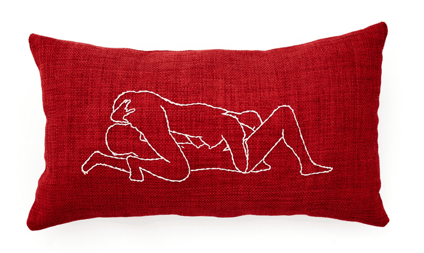 Since seeing a special XL version of these gorgeous embroidered pillows while previewing Fat Girl Food Squad’s Fat In Public art show, we’ve been obsessing over Toronto-based textile and installation artist Melody Krauze’s work. Monica even got her boyfriend a bespoke foursome [Assoc. Ed note: bespoke foursome PILLOW] for Valentine’s Day! Charming lil throw pillows with straight up doin’ it embroidered right onto them, these pieces strike the perfect balance between naughty and nice. Check it out:
