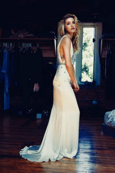 &FL: What really distinguishes us from what’s currently in the market right now is that we approach our line from understanding the context of the environment. Where is the bride going to wear this? That’s really important to us. Another thing that makes us really special is that everything is made right here in Toronto, from the design to the cutting to the hand beading. Our gowns are for women who value quality and craftsmanship, and aren’t afraid to embrace a more non-traditional look. The laid-back, bohemian-glam aesthetic appeals to a wide range of women, and suits a variety of Canadian environments such as a cool boutique hotel wedding on Queen St West, to a beautiful outdoor event in wine country.