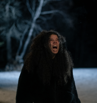I remember running a lot before I went and filmed, because I was not much of a runner. I got a C- in gym. And then reading the script, like, oh, now she’s sprinting away for her life. I really wasn’t sure I was going to be able to do it. So I ran for a few months beforehand, and was in the gym, I tried to do the cold plunges to get myself prepared for a Winnipeg winter (WinterPeg, as they call it). The mentality was there. I was driven enough to be like, “No, it’s gonna be okay. It’s gonna be fine.”