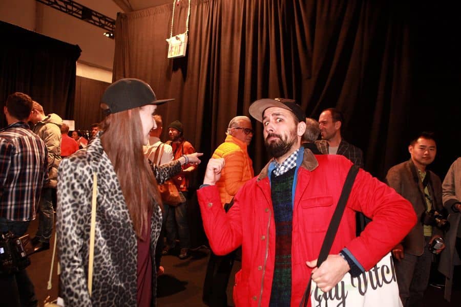 The inside of a Fashion Week tent can seem like a swirling vortex of impenetrable-doom-face. You know exactly what that looks like. Sometimes it feels like everyone has put on their best disappointed-mom look, and they are completely unwilling to joke around. For example, I told some random girl I was from V Magazine, and then I told her I was lying,”You were probably thinking that I don’t belong at V Magazine.” And then she just uncomfortably turned away and said “To each their own,” as if she had never heard someone make false claims as a really not-funny joke before. I’m not really into people who can’t find humour in a Less Than Zero-kind of world. People who refuse to grimace or laugh really worry me.So, I took care of that in the only way I knew how. Along with Becca Lemire, we found some truly fashionable people and got them out of their comfort zone. I was even mock-arrested by a handsome security guard. That’s just how we roll here. Did we engage in semi-sexual role play at Toronto Fashion Week? Check out part two of Nothing Comes Between Me and My Kevins below!