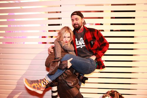 Fashion Magazine digital editors Paige Dzenis and Randi Bergman having a meet-cute with Kevin Naulls.