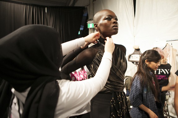 We’re so proud of Shedoesthecity’s Olga Barsky who managed the baffling feat of launching UNCUFFED this past fall and showing at Toronto Fashion Week less than six months later! Her badass chokers and leather straps bring the edge to HELDER DIEGO’s striking collection.