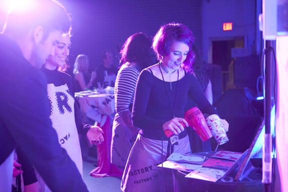 We did our best to play the role of Factory Girl as we went up and down the escalator, exploring the installations and live performance art. There was body paint, body glitter, naked bodies, and a hidden room where we could make Drake art. Young Lions Music Club, Kardinal Offishall, Jacob Niedzwiecki, Kaitlyn Reghr: The Boombox committee enlisted some of Toronto’s boldest talent to really make this party P-O-P!