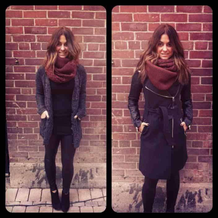 Full knit cable knit infinity scarf, $65 at Vocado Emily Dobbie is an accountant-turned-shop owner; always a good combination of skills! Vocado now has two locations, Liberty Village and Oakville, but Emily also sells online. So, who in your fam needs this scarf? We think Emily looks pretty cute, happy, and warm in the burgundy infinity.