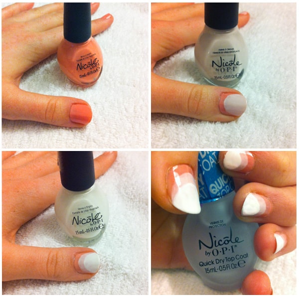 - Using your lightest shade, start at the centre ¼” below the last colour you’ve applied and paint to the tip of the nail. SO EASY