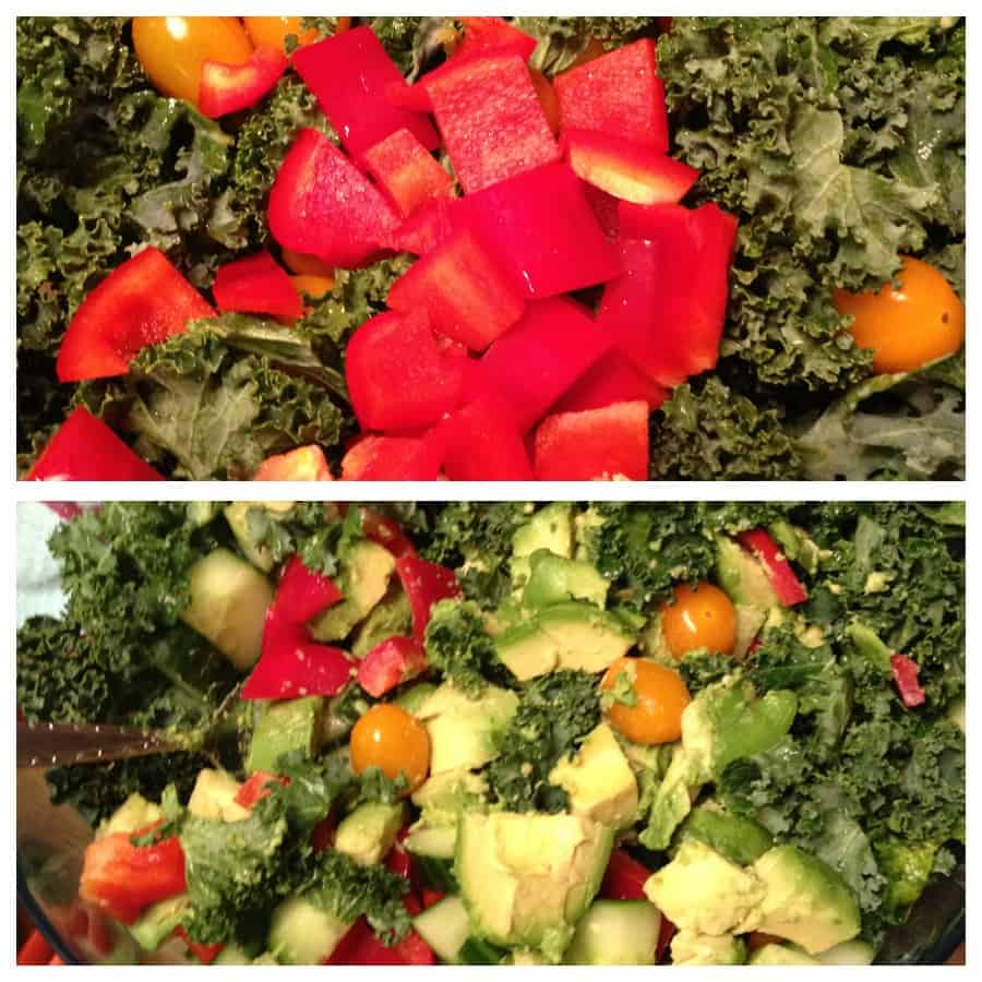- Make sure dressing is nicely rubbed on kale leaves (even if it requires getting your hands a little dirty)
