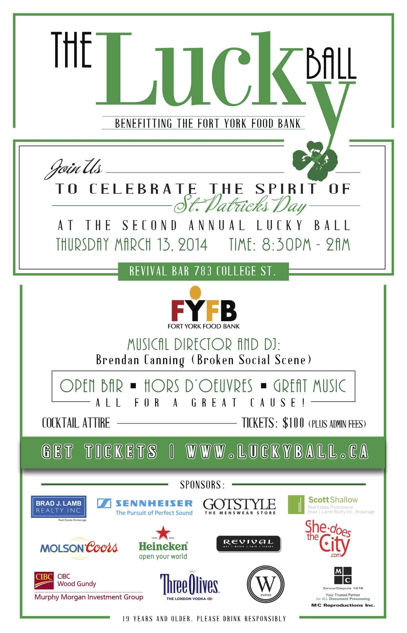 Organized by friends and neighbours who care, Lucky Ball raises much needed proceeds for the Fort York Food Bank, located at Dundas and Bathurst. If this is your ‘hood, attending this party and supporting local people and families in need is a a no-brainer.